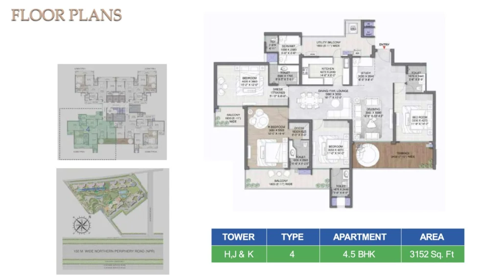 - World-Class Amenities and 1,00,000+ Sq.Ft Clubhouse: Residents enjoy access to a state-of-the-art clubhouse featuring a rooftop jogging track, yoga studio, swimming pool, spa, wellness center, and multiple sports facilities, catering to a luxurious lifestyle.