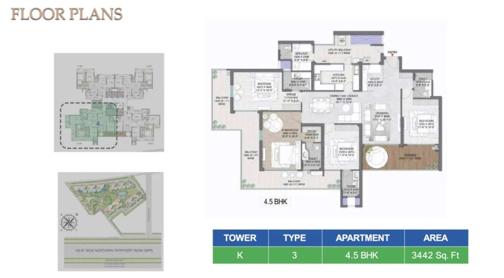 - Strategic Location at Delhi-Gurgaon Border: Situated right on the Dwarka Expressway, the project provides seamless connectivity to Delhi, IGI Airport (7 minutes away), Yashobhoomi Convention Centre (5 minutes), and the upcoming Diplomatic Enclave II.