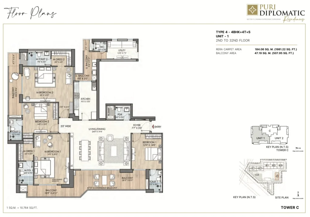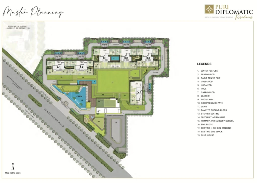 Puri Diplomatic Residences presents an exceptional under-construction high rise residential apartments project in Sector 111, Gurgaon, spanning an impressive 5.5 acres of meticulously planned space. This prestigious development features 6 towers with 32 floors each, offering premium high rise apartments designed for modern homebuyers seeking quality high rise residential apartments in Gurgaon’s prime Dwarka Expressway corridor with world-class amenities and Mivan construction excellence.
