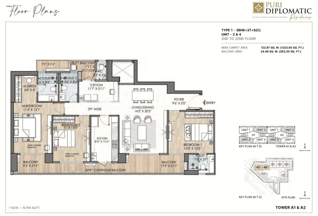 Puri Diplomatic Residences represents the pinnacle of high rise residential apartments development in Gurgaon’s most sought-after Dwarka Expressway corridor. With its premium 3BHK and 4BHK configurations featuring dedicated study areas and utility spaces, this development caters to varied family needs seeking luxury high rise apartments with world-class amenities. The development’s strategic position on Dwarka Expressway, combined with advanced Mivan construction technology, ensures residents enjoy excellent urban convenience within a thoughtfully planned high rise residential apartments environment.