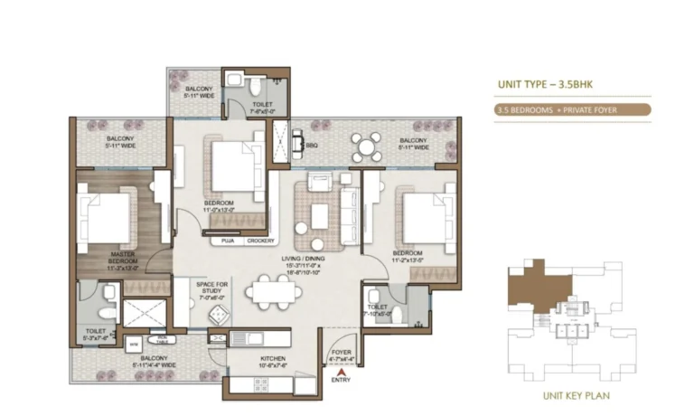 - Over 75,000 Sq.Ft Clubhouse with 50+ Lifestyle Amenities – Including infinity-edge pool, sports arenas, work-from-home zones, wellness spa, and kids’ entertainment areas.
